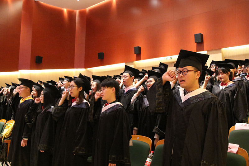 在法商学院13工商管理2班李佳玥的带领下,全体毕业生庄严宣誓。