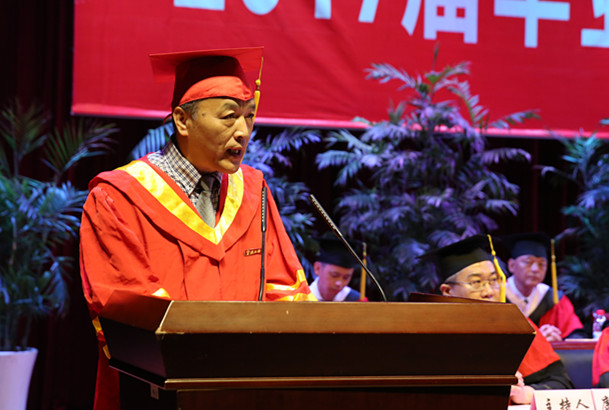 院长陈君静教授发表了热情洋溢的致辞,他祝贺同学们圆满完成学业,他期待同学们毕业后能发挥聪明才智,以一种成熟、稳重、平和的心态面对各种困难的挑战,成为一个想办事、会办事、还能办成事的人。他希望同学们能够秉持独立自由的思想精神,学会在纷杂的现实世界和虚拟世界中坚持自己的理性判断,勇于质疑和批判,做一个信仰坚定、内心强大的人,热爱生活,学会生活,享受生活。