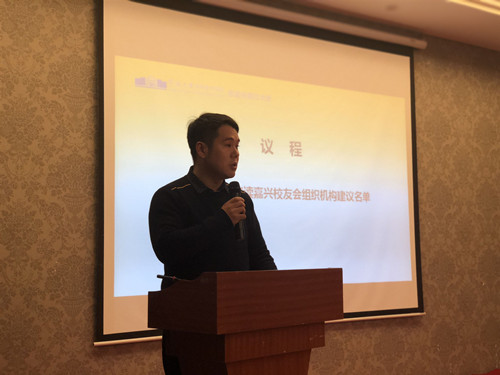 学院学工部部长、校友办主任沈旭伟宣读嘉兴校友会组织机构建议名单