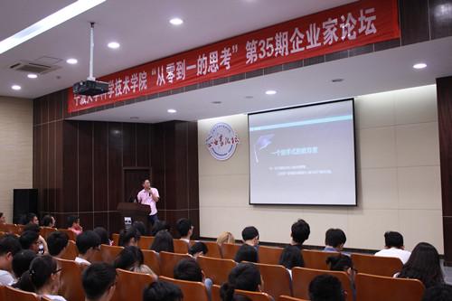 5月25日,宁波大学科学技术学院第35期企业家论坛“从零到一的思考”在杨咏曼楼9楼报告厅成功举行。本次活动的主讲嘉宾是80后新锐实战投资企业家、得展投资管理有限公司创始人——邢英达。会场座无虚席。