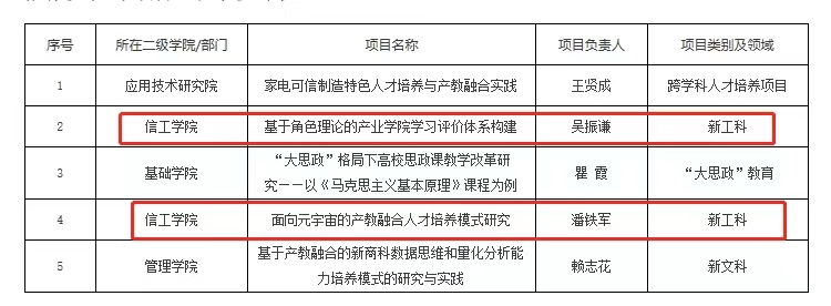 11月7日,浙江省普通本科高校“十四五”教学改革项目拟推荐公示。我院信工学院教师吴振谦、潘铁军负责项目成功入选。