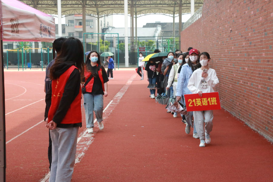 所有同学在工作人员的指导下,严格遵守疫情防控相关规定,全程佩戴口罩,一米线,有序排队等候,积极主动配合核酸检测工作。
