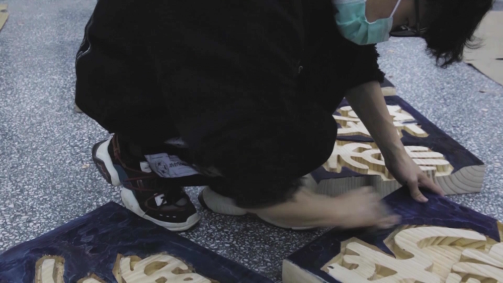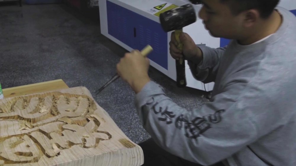 一笔一划,一刀一凿。板上文字采用小篆字体为基础进行艺术加工,再利用拓印、雕刻、抛光、倒角、打磨等手工篆刻技术进行制作主题,最后用油画、丙烯及木质专用漆进行上色,最终展示为社会主义核心价值观3D效果。