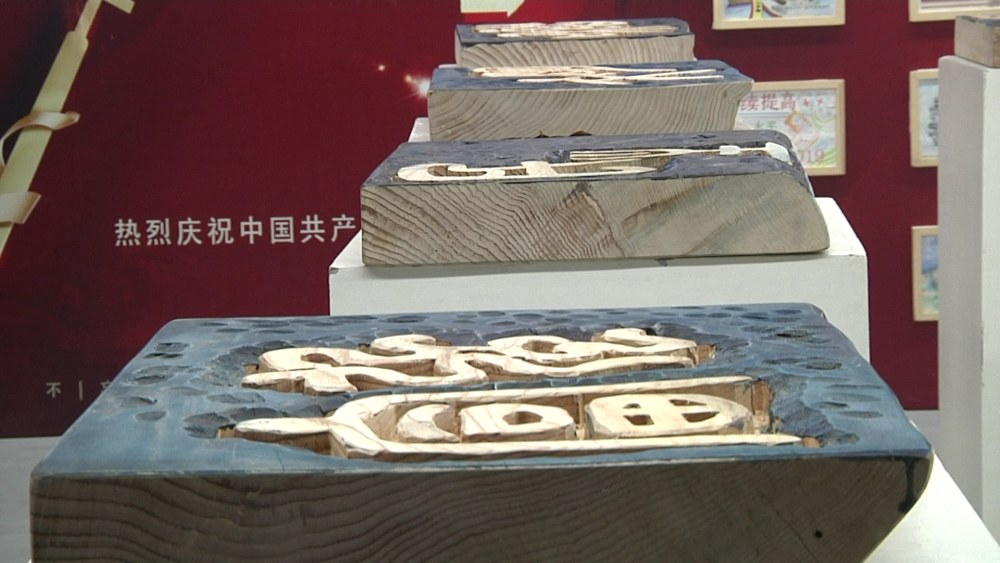【同期声】宁大科院 艺术学子 李佳敏:我们是艺术品陈设专业的,之前我们学院有一个展就是“裂”,是木制主题的展览。我们去看了以后深有体会,对木雕这块有学业的基础在,自己也比较感兴趣,又恰逢建党100周年。我们就想着用社会主义核心价值观为主题进行篆刻为党庆生,作为一份礼物。