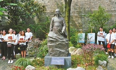 图为郑梦周铜像在宁波庆安会馆落成。(周建平 摄)