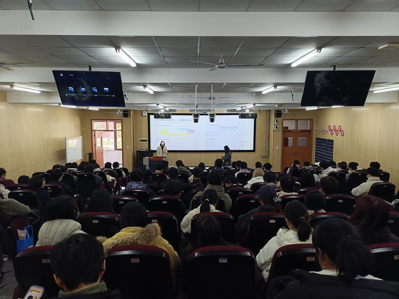 讲座紧扣大学生生活实际,精心设置了“消费现状画像”“法律武器库”“五大高频陷阱”“维权实战指南”及“互动答疑”五大核心模块,内容紧凑,干货满满。讲座伊始,徐海燕律师以“风险画像”为引,通过详实数据直击当前大学生群体中普遍存在的消费误区与潜在风险,引发了同学们的强烈共鸣。