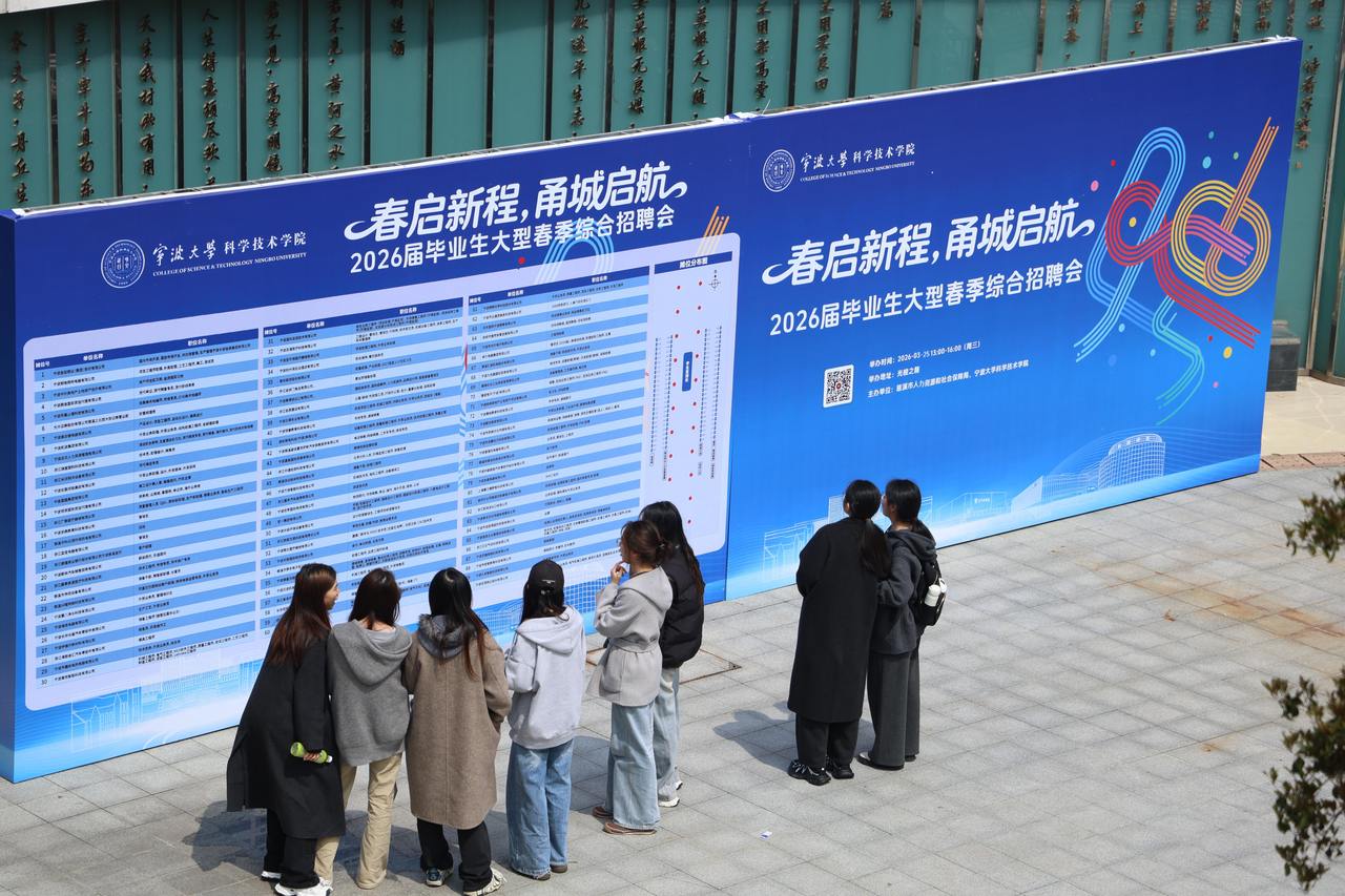 春风拂面,职引未来。宁波大学科学技术学院内人头攒动,一场以“春启新程,甬城启航”为主题的2026届毕业生大型春季综合招聘会在此火热开启。招聘会由该校联合慈溪市人力资源和社会保障局共同主办,旨在聚焦毕业生求职刚需,通过深化校地合作与精准服务,打造一站式、多元化就业场景,全力护航学子从校园迈向社会的“最后一公里”。