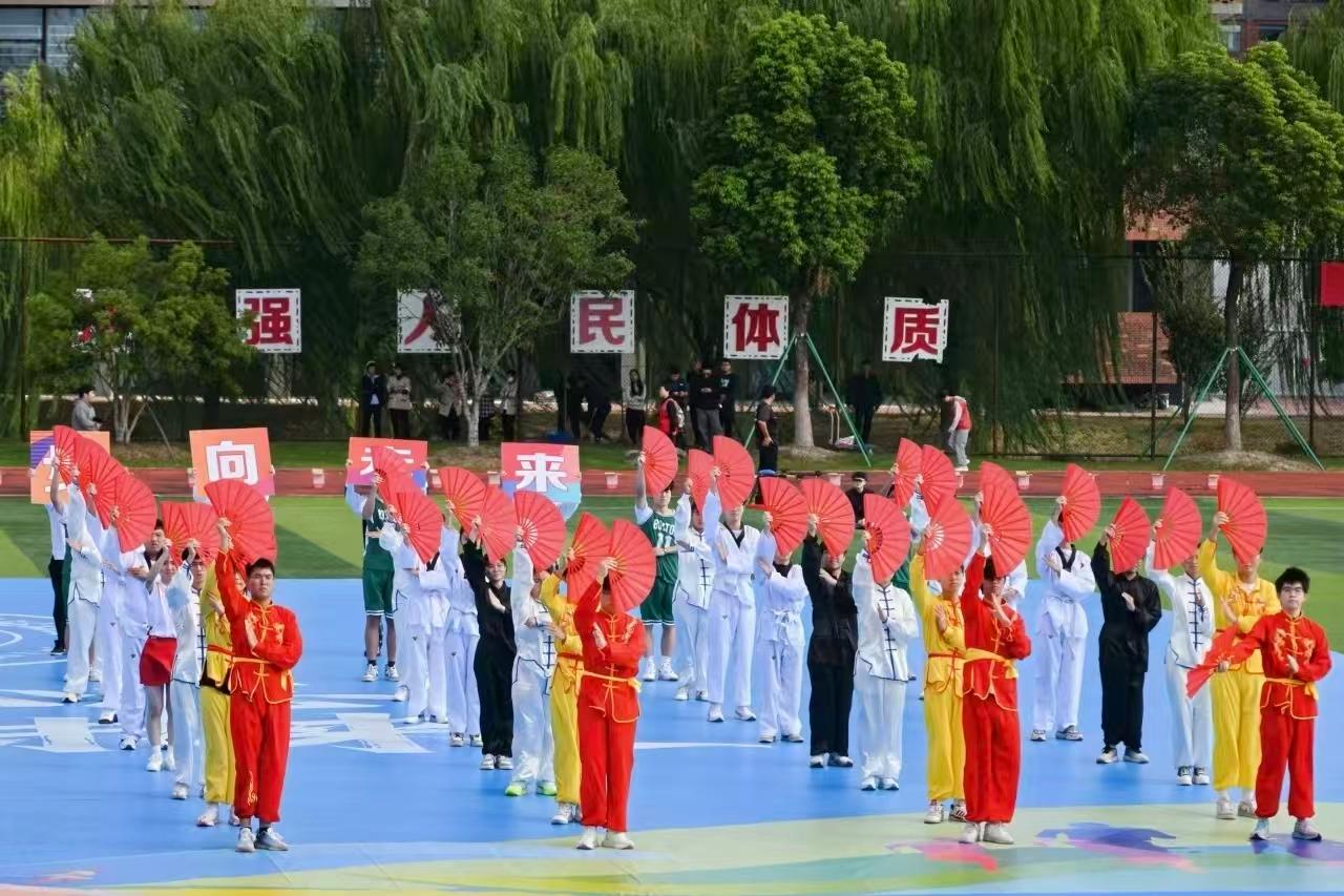 教职工们带来的《雪龙吟》刚柔并济、气势铿锵,他们以扇为笔,书写运动精神,以奋进姿态,诠释责任担当。