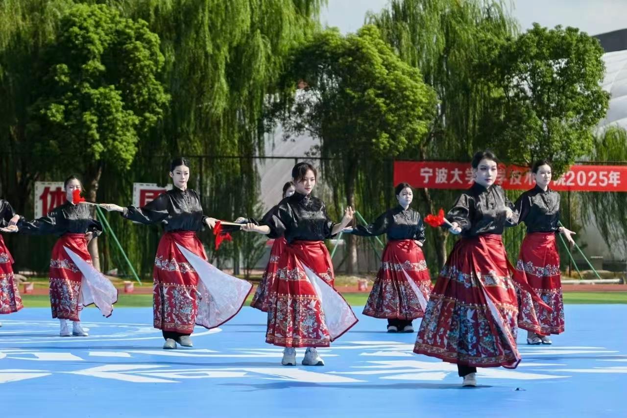 由基础学院指导校体育舞蹈队和校武术队带来的《霍元甲》《吴钩汉月-戚家军》,鲜衣怒马 刀锋凌厉用力与美的较量, 舞动中西用青春活力,再现戚家军魂,为赛场注入了无限热血与荣光。