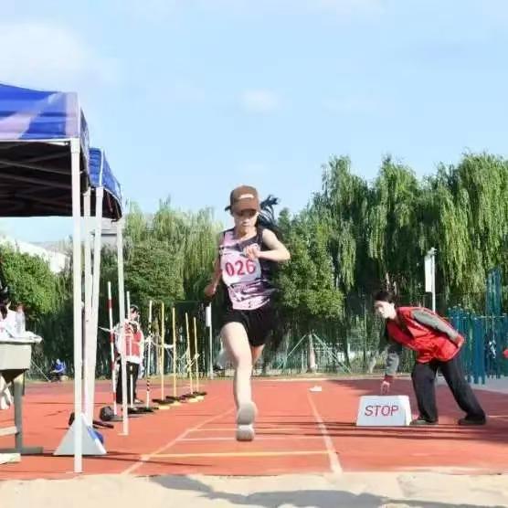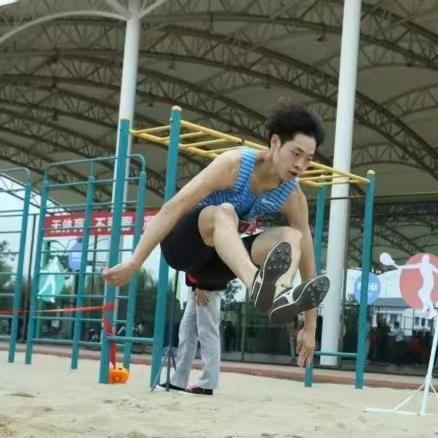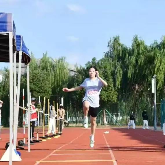 沙坑中留下的足迹,是飞翔的印记,三级跳远,连接着奔跑、飞跃与冲刺,每一步腾挪,都在缩短与未来的距离,你们用腾空,告诉世界何为超越。