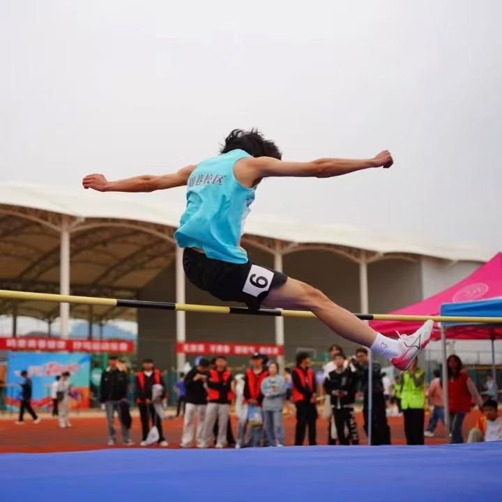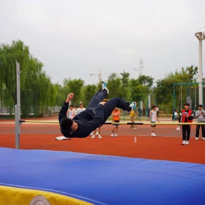 跳高杆前,轻扬的身影掠过天际,每一次腾空,都是对地心引力的叛逆,不断升起的不只是横杆,更是少年们永不言弃的梦想高度。