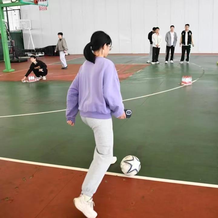 足尖轻推,足球带着全组的期盼,滚向目标,倒与不倒,皆是欢笑的源泉。