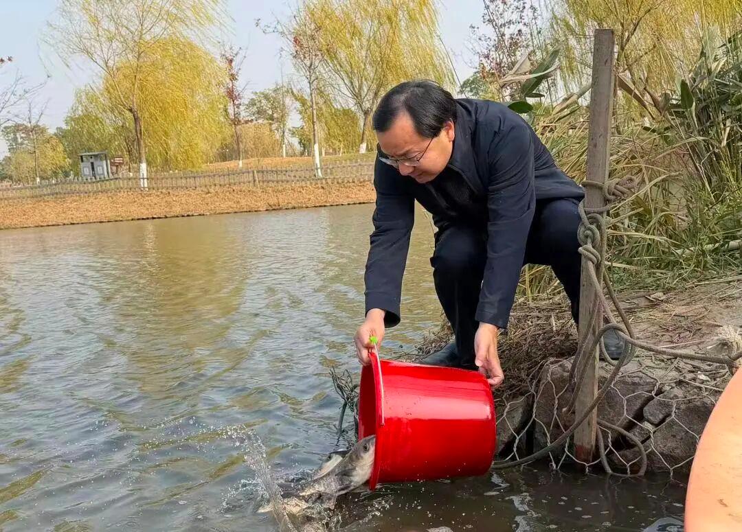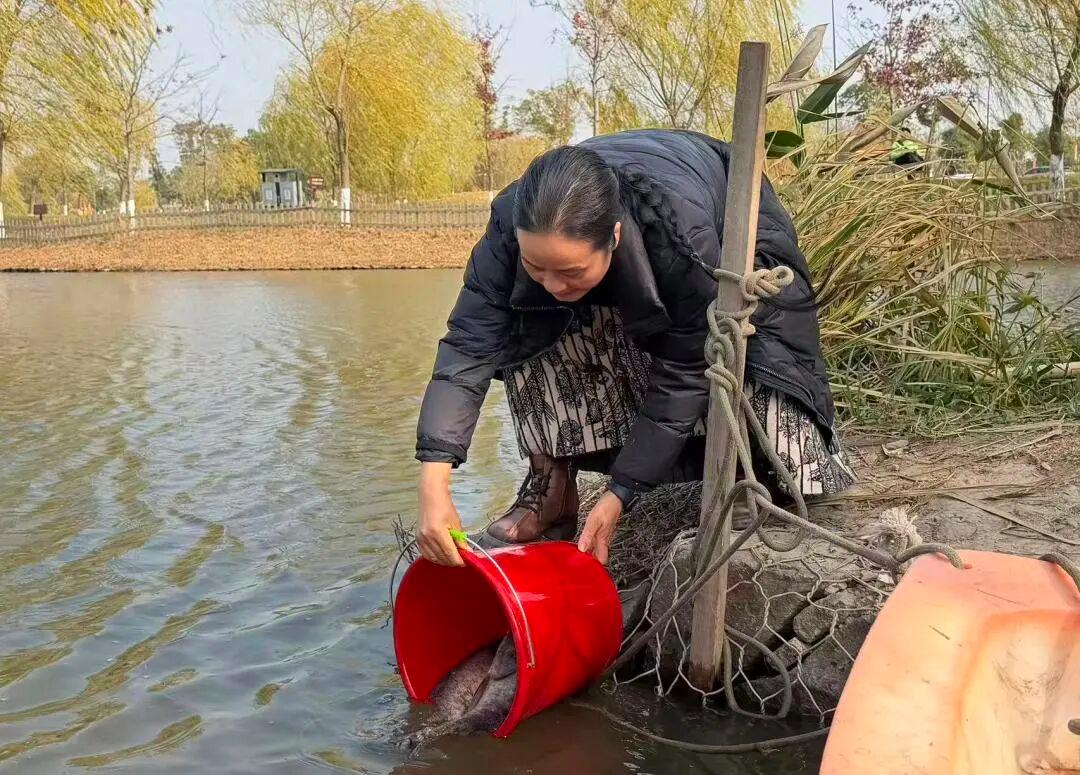 捕鱼活动结束后,我校延续历年传统,在镜我湖进行鱼苗增殖放流活动,共投放7500尾鱼苗。多年来,学校始终践行“捕补平衡、生态持续”的理念,已在校园水域累计投放鱼苗超30000尾。这不仅是生动的生态实践,更将“绿水青山就是金山银山”的理念,深植于一次次放流的守望之中。