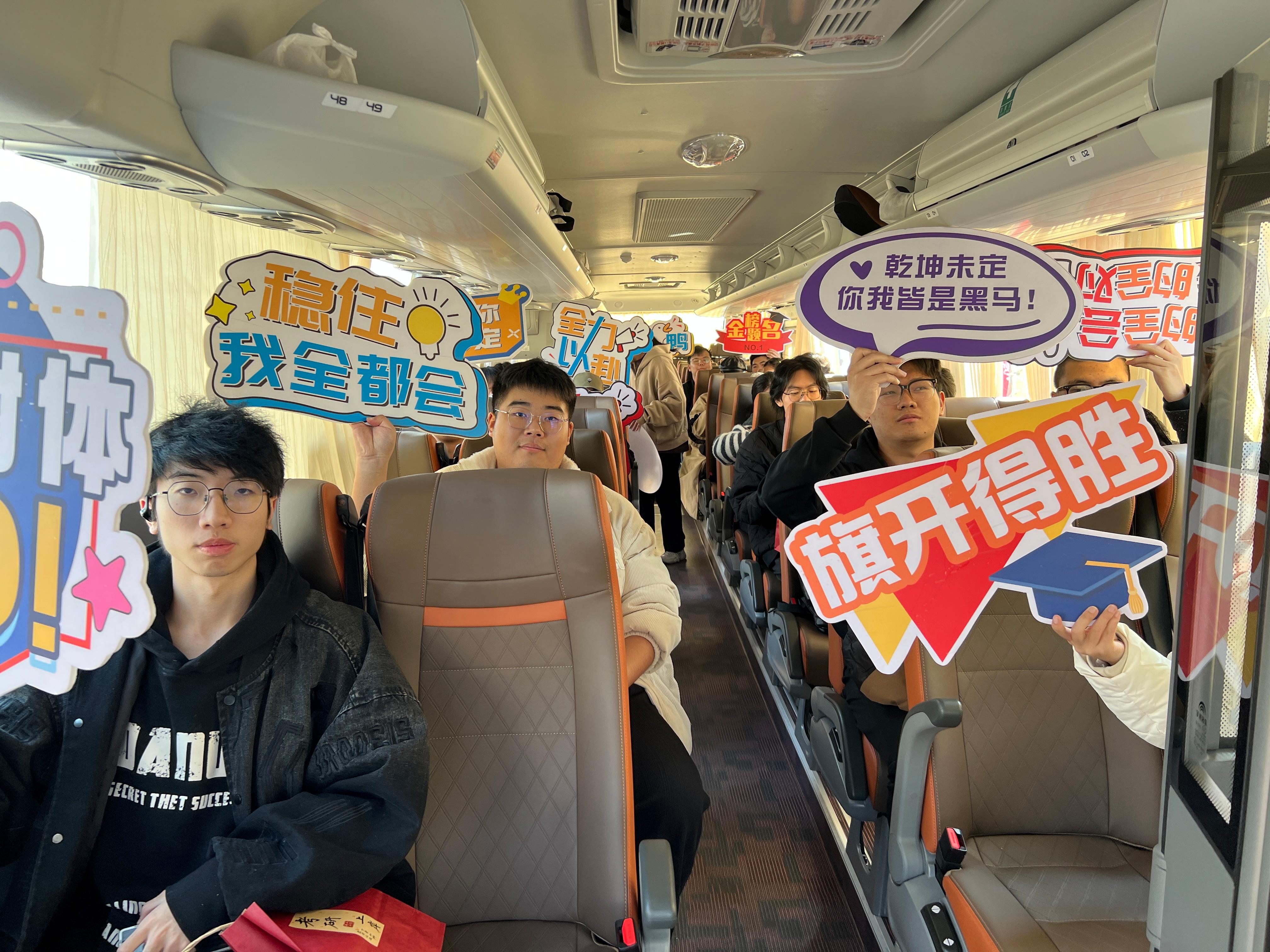 据统计,我校今年共有700余名学生报考研究生,学校提前部署,为有送考需求的400余名学生安排送考服务,提前一天将他们送往宁波大学、宁波工程学院、浙江万里学院、浙大宁波理工学院、宁波财经学院等8个考点,并会在考试结束后接考生们返校。