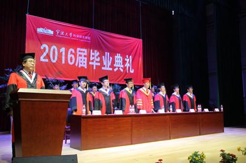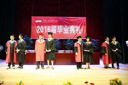 会场响起连绵不断的掌声、欢呼声,在宁大校歌和《毕业歌》的歌声中,宁波大学科学技术学院2016届优秀毕业典礼暨学位授予仪式圆满结束。