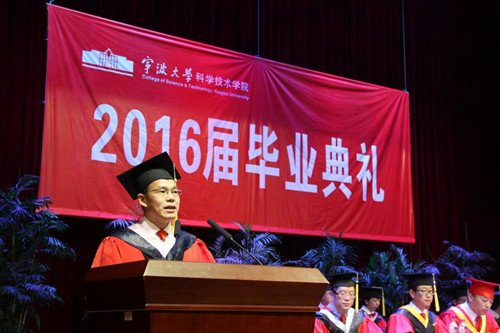 6月16日上午,宁波大学科学技术学院2016届优秀毕业生毕业典礼在忻元甫活动中心隆重举行。学院院长陈君静、院党委书记邓建平等领导出席了毕业典礼并为优秀毕业生拨穗授予学位。优秀毕业生和优秀毕业生家长代表、学院领导、下属学院院长以及教务与学工负责人参加了典礼。典礼由党委副书记康棵飚主持。