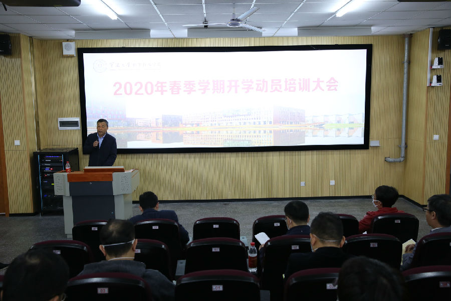 4月27日下午,我院召开2020年春季学期开学动员培训大会。学院全体中层干部参加会议。学院党委书记邓建平主持会议。