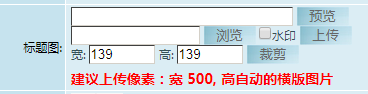 1. 标题图:需要用PS或美图秀秀软件处理为宽500像素,高自动的图片。点击浏览,选中文件,点击水印,再点击上传。即可上传成功。